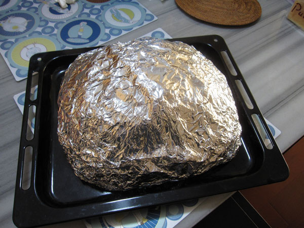 層層包綑(但烘烤中還是會出水 讓我擔心了好一陣子)