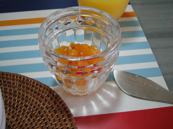 <a target="_blank" href="http://www.pixnet.net/photo/brightside/89174876"></a><a href="http://www.pixnet.net/photo/brightside/89174865"><img src="http://pic.pimg.tw/brightside/1210165560.jpg" border="0" /></a><br /><br /><br /><br /><br /><br />用一顆鳳梨 2顆檸檬 150克白砂糖做了鳳梨果醬<br />要找到偏酸的鳳梨並不容易<br /><br /><a target="_blank" href="http://www.pixnet.net/photo/brightside/89174873"><img src="http://pic.pimg.tw/brightside/1210165562.jpg" border="0" /></a><br /><br />當早餐最合適了<br /><br /><a target="_blank" href="http://www.pixnet.net/photo/brightside/89174876"><img src="http://pic.pimg.tw/brightside/1210165563.jpg" border="0" /></a><br /><br />非常喜歡這個玻璃小盅<br />他還有兩個不同花紋的姊妹<br />有機會該一口氣做三種果醬<br /><br /><a target="_blank" href="http://www.pixnet.net/photo/brightside/89174869"><img src="http://pic.pimg.tw/brightside/1210165561.jpg" border="0" /></a><br /><br />配紅茶也很不錯<br /><br /><!-- more -->